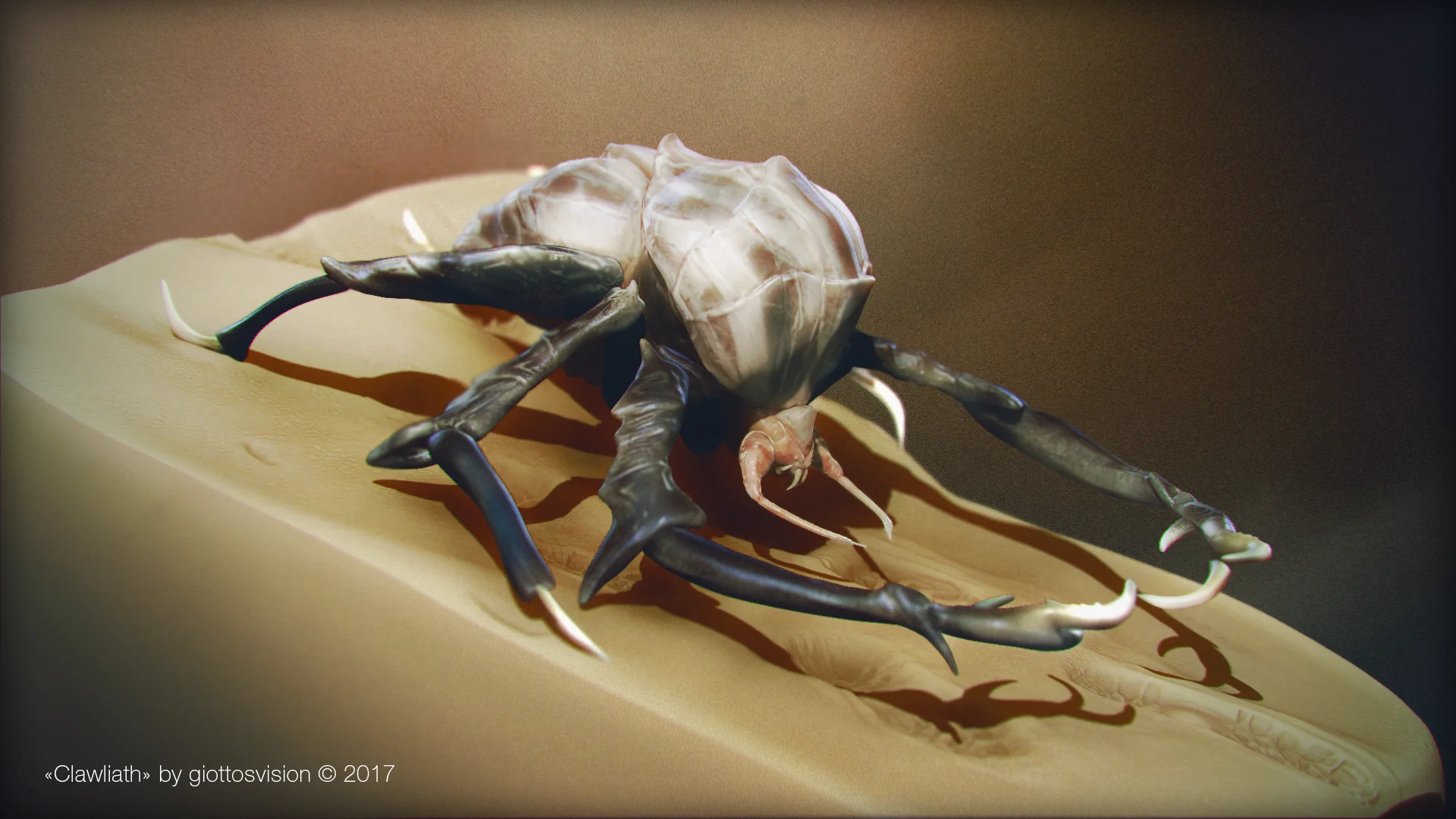Then finally, in January 2017 I decided to refine those shapes and finish this insect creature. Renderings all done in ZBrush directly and final comped in Photoshop.